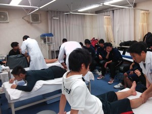 鍼灸治療やアライメントの調整をした選手達は「足が軽い~」、「膝痛かったのに痛みが消えてる」、「全身の疲労が取れた感じがする」などなど治療効果を実感し高評価を得ています。兵庫医療学園教員・卒業生が治療&コンディショニングの面でしっかりとサポートさせていただきますので選手のみなさんがんばってくださいね!!